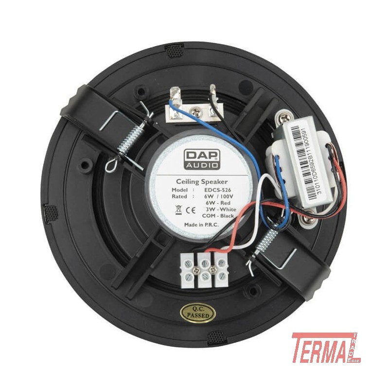 DAP EDCS-526, 5'' zvočnik 100V Installations serije. Serija DAP EDCS združuje dobro kakovost zvoka in eleganten dizajn v cenovno ugodni rešitvi za komercialne audio instalacije. Te serije so na voljo v belih in črnih ohišjih in so pravo orodje za vsako namestitveno audio opravilo.
