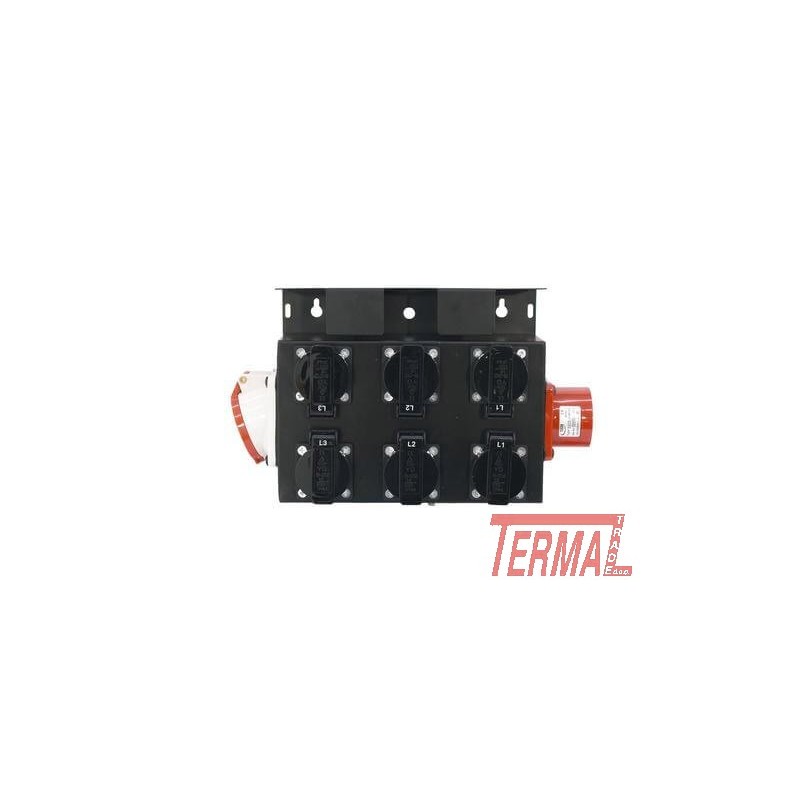 32A power distributor z 3 × 32A/400V vhodom in 6 šuko izhodi.