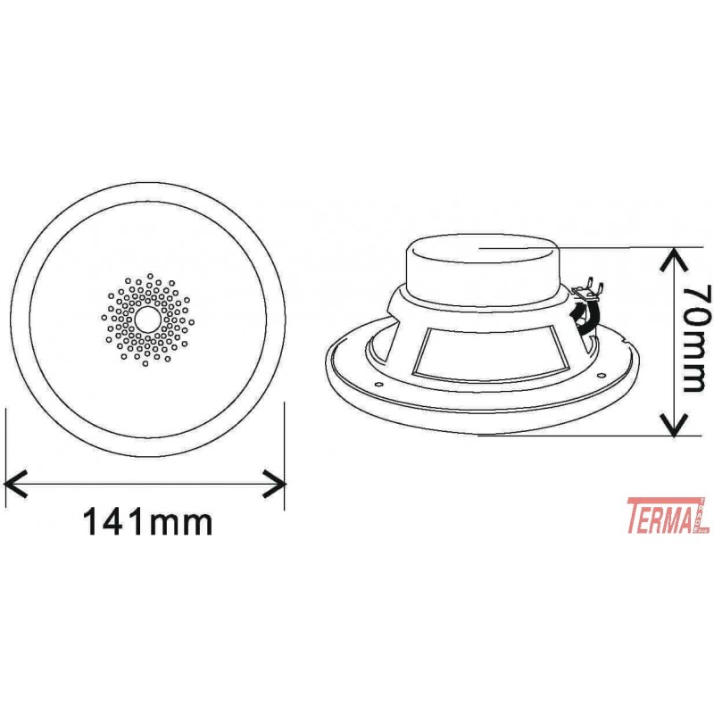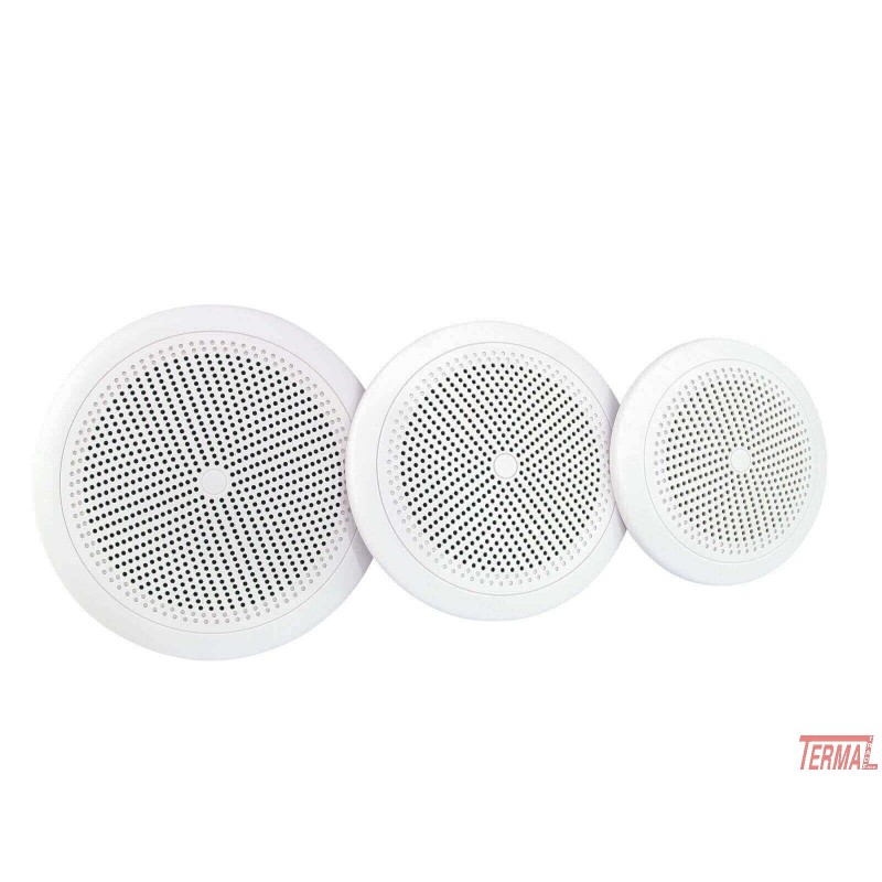 Vremensko odporen 2-sistemski zvočnik (IP44), LF: 5" HF: 1", 20 W RMS, Ø 12,0 cm. 2-sistemski s 10cm nizkotoncem (4") in 2,5cm visokotoncem (1"), 8 ohmski sistem zvočnikov. Robustno plastično ohišje, montaža preko lukenj na plošči ohišja. Primerno za zunanjo uporabo. IP44 Za montaže kot so: restavracije, bari, hoteli in podobne objekte
